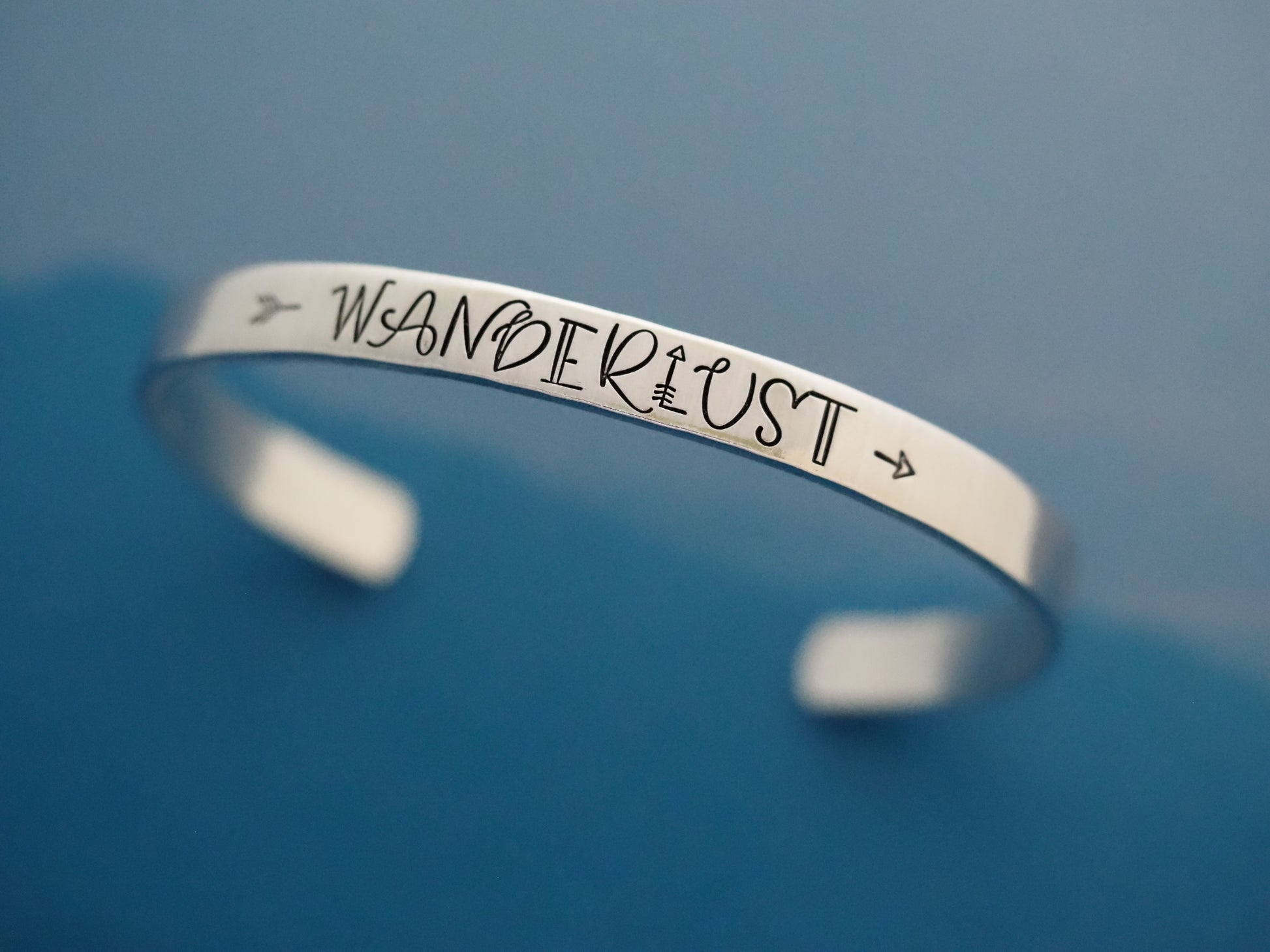 This cuff bracelet is approximately 1/4" wide, made of thick, high-quality pure aluminum, and lead and nickel free.